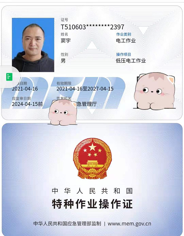 就是從事低壓電工作業(yè)的特種作業(yè)操作證。持有該證件,能從事低壓電工作業(yè)。即指1千伏一下(不含一千伏)的低壓電器設(shè)備進(jìn)行安裝、調(diào)試、運行操作、維護(hù)、檢修、改造施工和試驗的作業(yè)。要求從業(yè)人員必須持卡(IC卡)上崗,此證書全國通用。